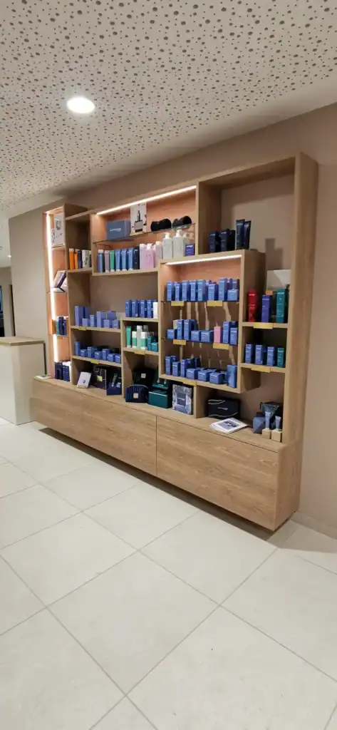Nous avons réalisé l’agencement complet d’Aquavithal : de l’espace d’accueil à la boutique, en passant par les cabines de soins et les zones de détente.