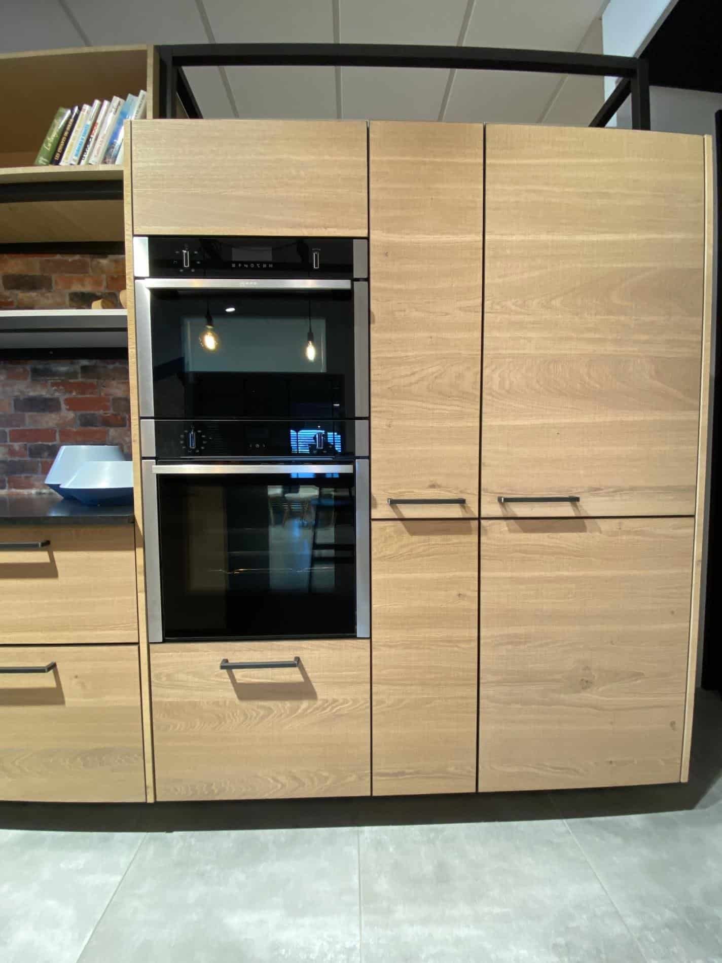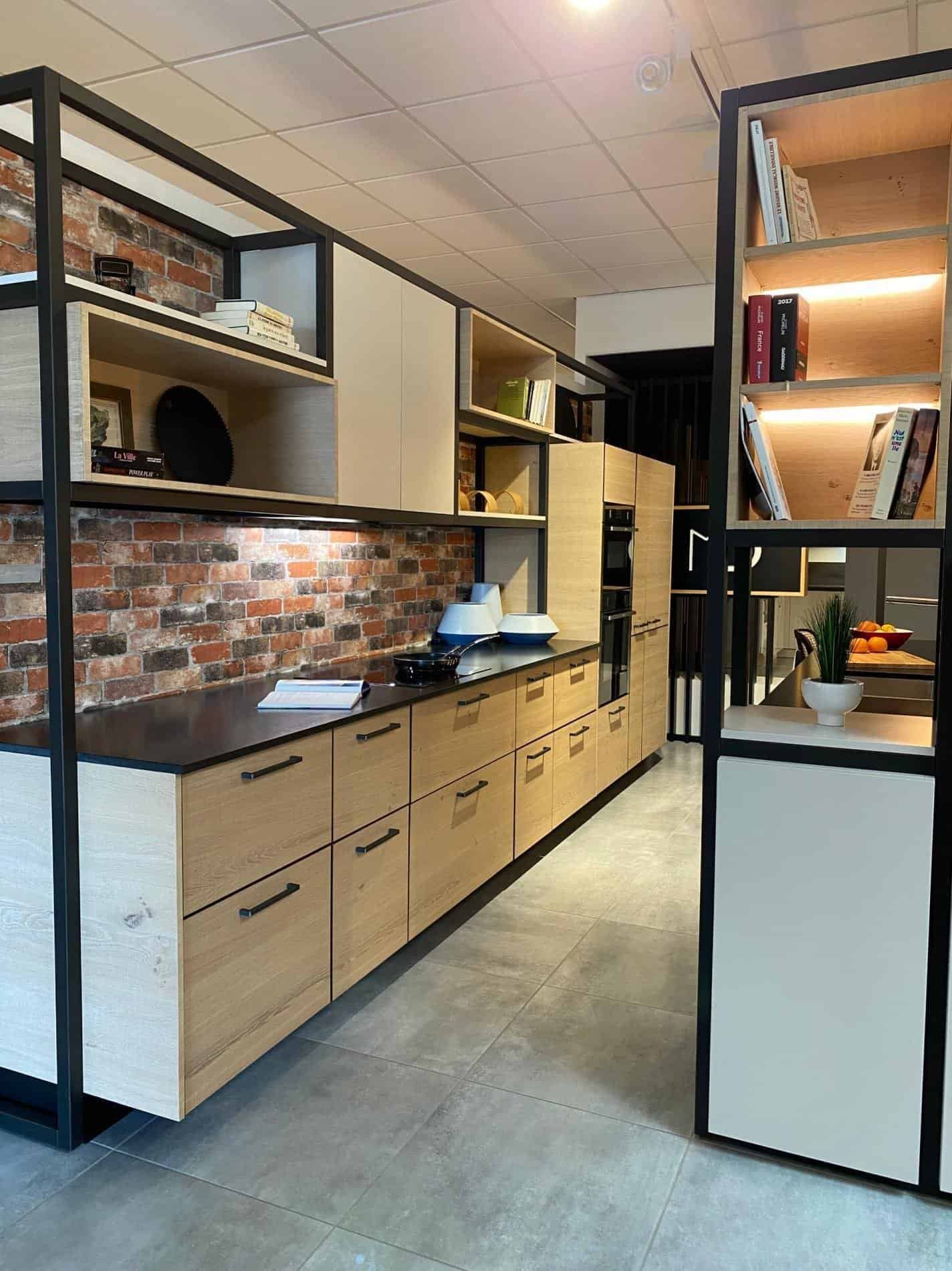 -un linéaire de L456 x P65 cm avec des meubles bas et des meubles hauts, la plaque de cuisson induction Pando PI_3300, la hotte Pando, et 3 colonnes petites hauteurs avec le four multifonctions Neff B3ACE4AN0, le micro-onde Neff C1AMG83N0 et le réfrigérateur combiné – Biofresh Liebherr IRBD5150-20.