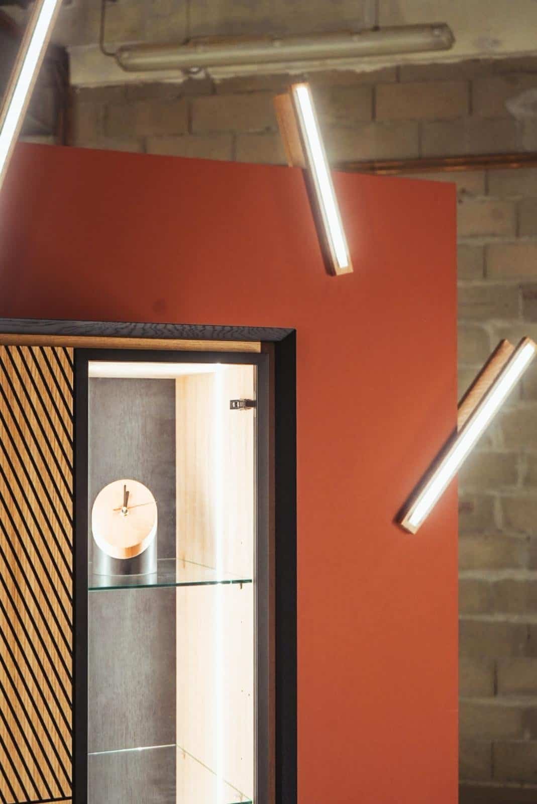 Façades de porte en MDF Valcromat noir plaqués chêne véritable, avec usinages rainures asymétriques
