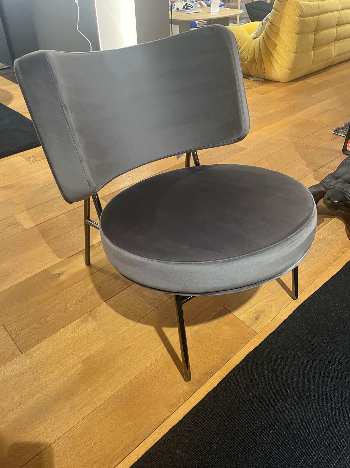 Fauteuil Coco Structure P1L mEt. NICKEL NOIR Assise S0L Venice GRIS CENDRE L 70 x P 80 x H 79 x HS 45