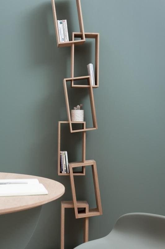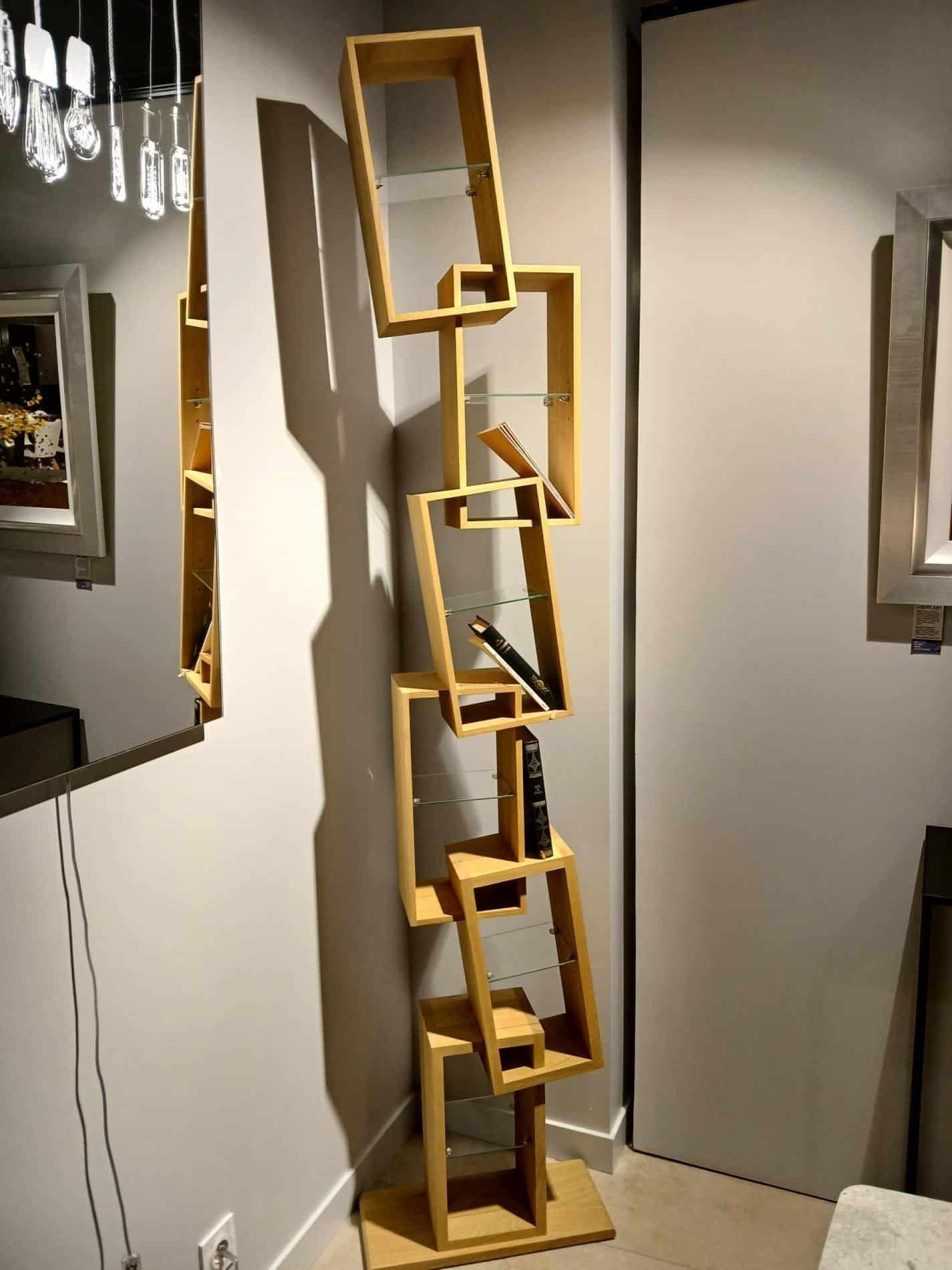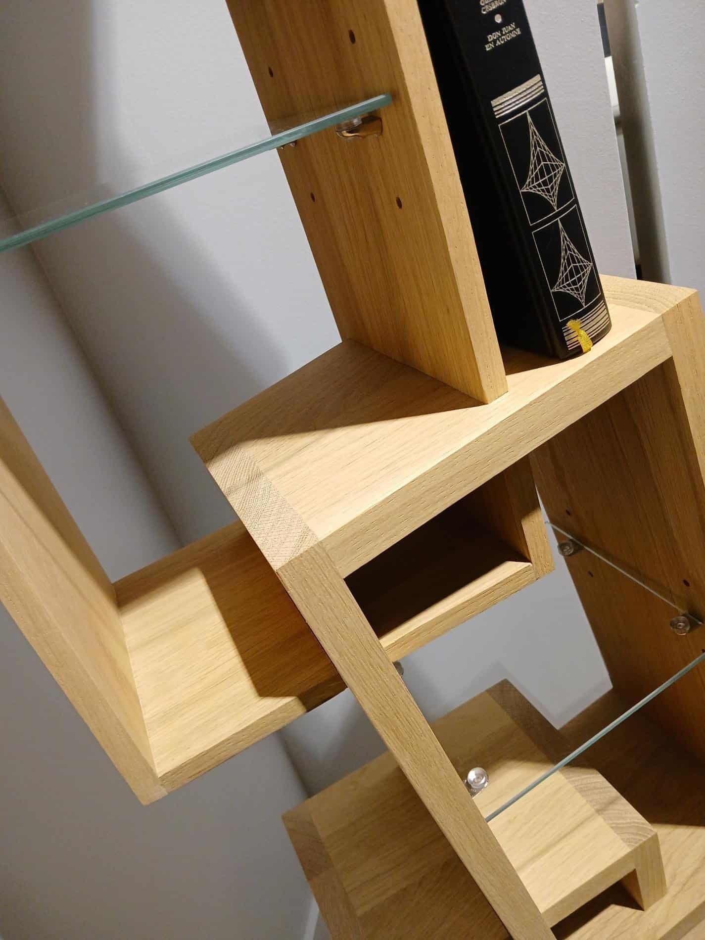 Bibliothèque 6 éléments en équilibre avec 6 tablettes verre réglable Livrée montée Chêne français 100% massif Dimensions L 50 x P 22 x H 225 cm