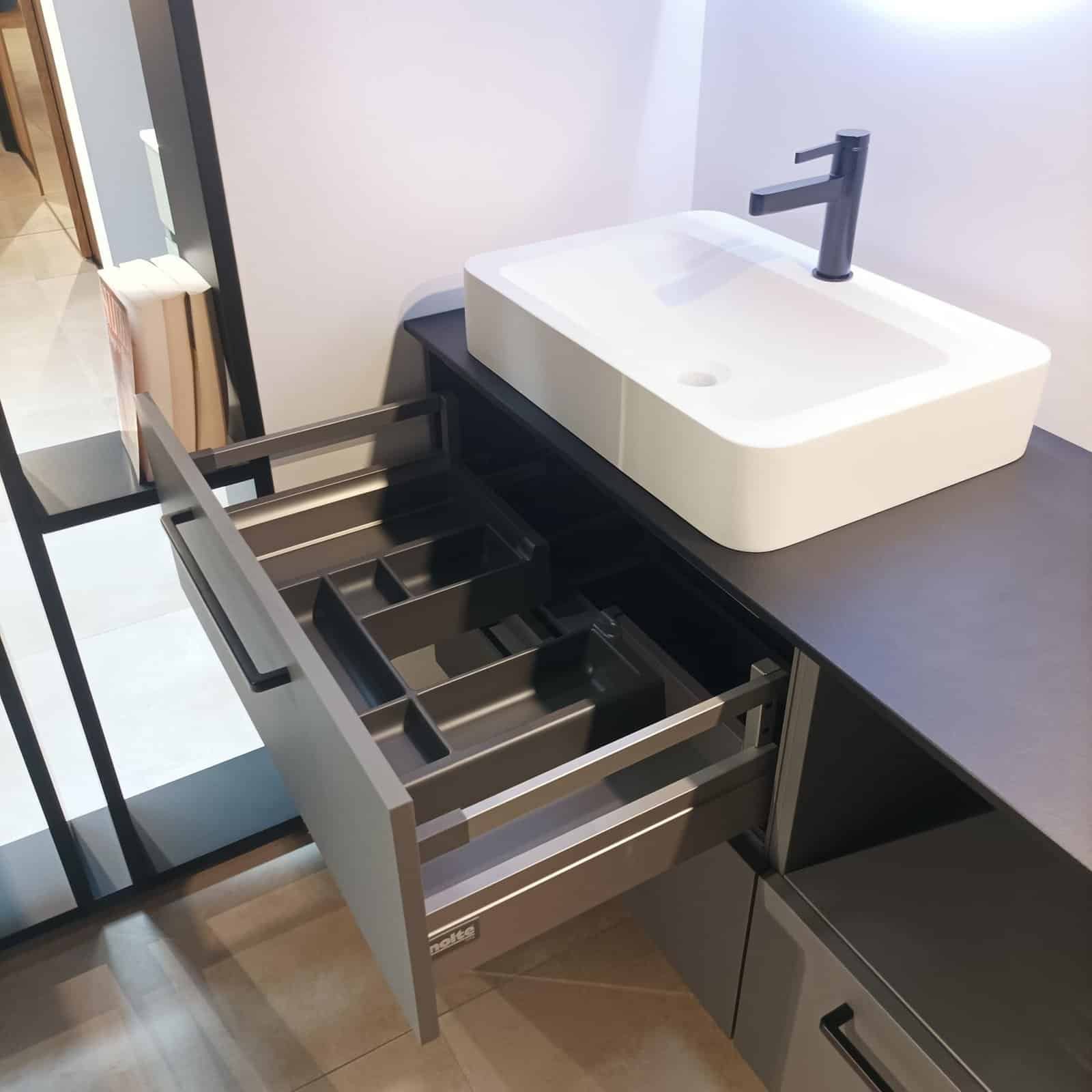 -Un meuble de salle de bain de 140x60x48cm avec 3 coulissants et 1 niche ouverte